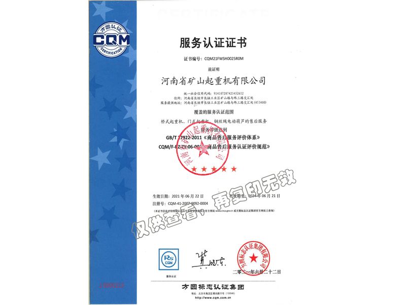 服務(wù)認(rèn)證證書