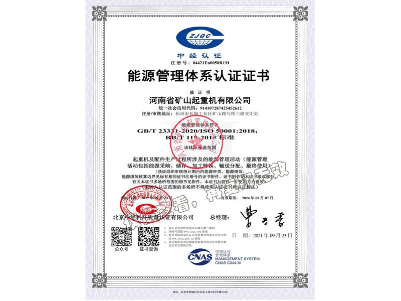 能源管理體系認(rèn)證證書