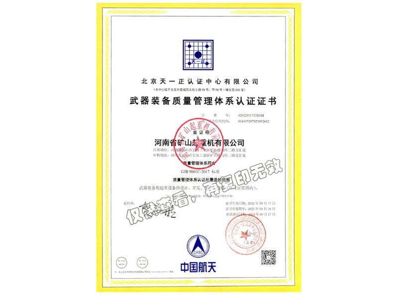 武器裝備質(zhì)量管理體系認(rèn)證證書